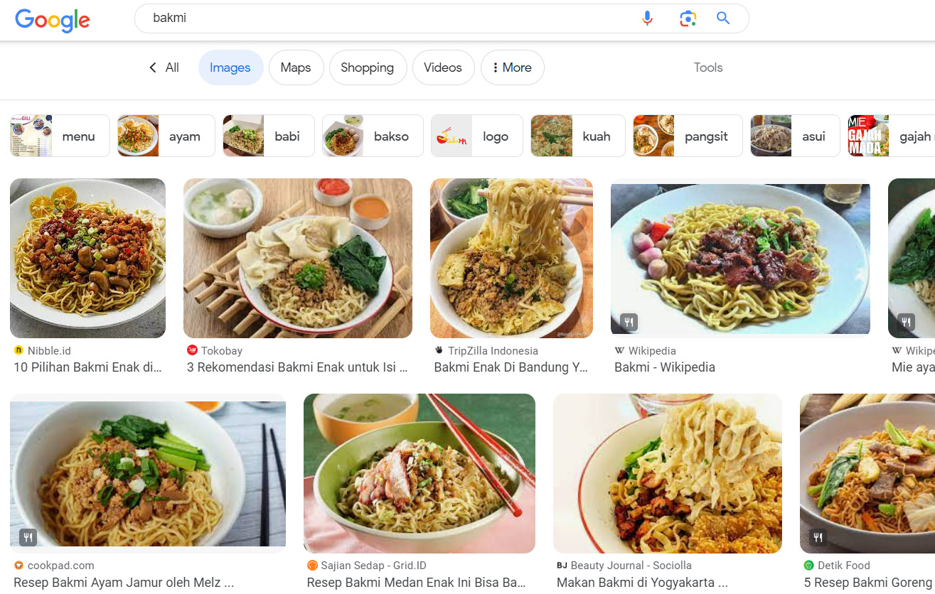 [Bakmi] = noodle, one of the Indonesian dishes that looks like this.