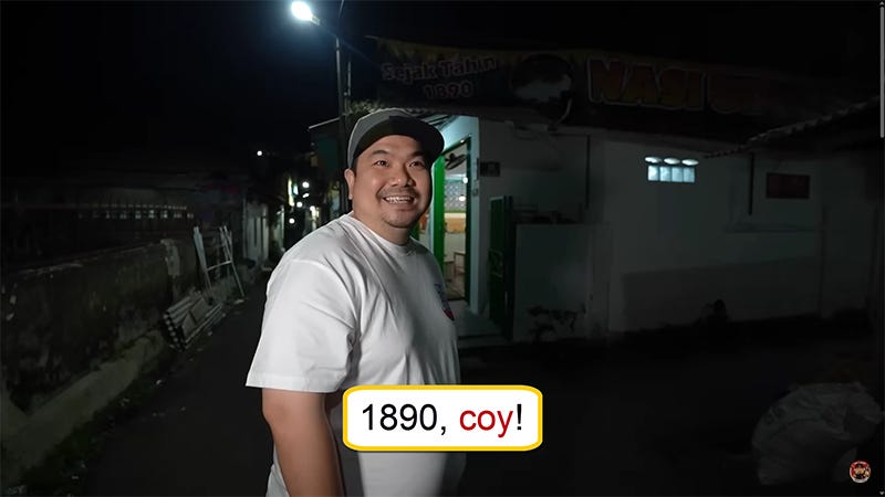 [Jepang aja belum dateng] <--- By saying this, what he meant was that Japan came to Indonesia to colonize Indonesia in 1942. If this restaurant was established in 1890, it means Japan had yet to colonize Indonesia.