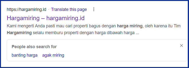 After they say [harga miring], they say that they are searching for properties with a price tag under the market price.