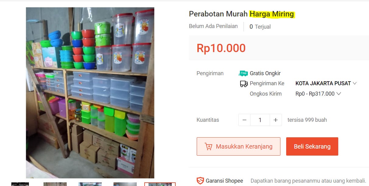 [Perabotan murah] here means household items that are usually cheap, but moreover, here, the seller sells those cheap household items at very low prices.