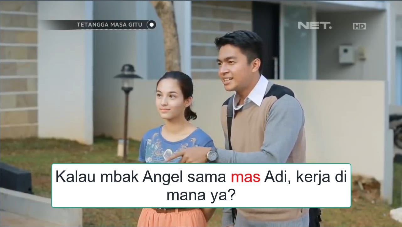 So here, Bastian is being friendly, but also showing good manners by using [mas] and [mbak] when talking to his new neighbors.