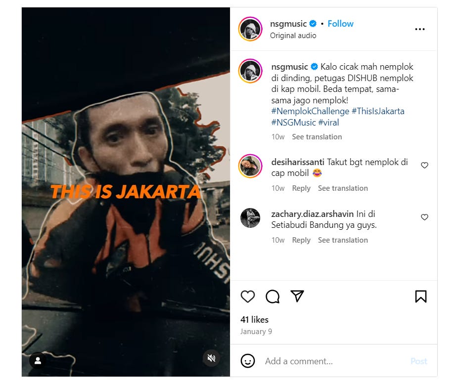 1. Kalo cicak mah nemplok di dinding, petugas DISHUB nemplok di kap mobil. Beda tempat, sama-sama jago nemplok! (If the lizard sticks to the wall, the DISHUB officer sticks to the hood of the car. Different places, but both are good at sticking!)