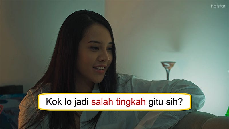 Next, let’s watch examples that I took mostly from movies where the phrase [salah tingkah] is spoken by Indonesians.
