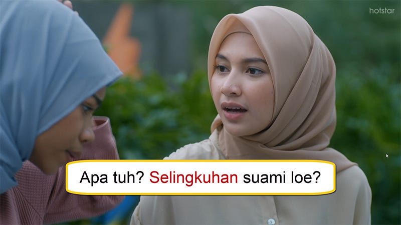 Ami is Tari’s best friend, and she knows all about this. That’s why when she tries to sneak peek into what Tari’s watching, she jokes to Tari by saying, “Selingkuhan suami loe? (Is that your husband’s mistress?)
